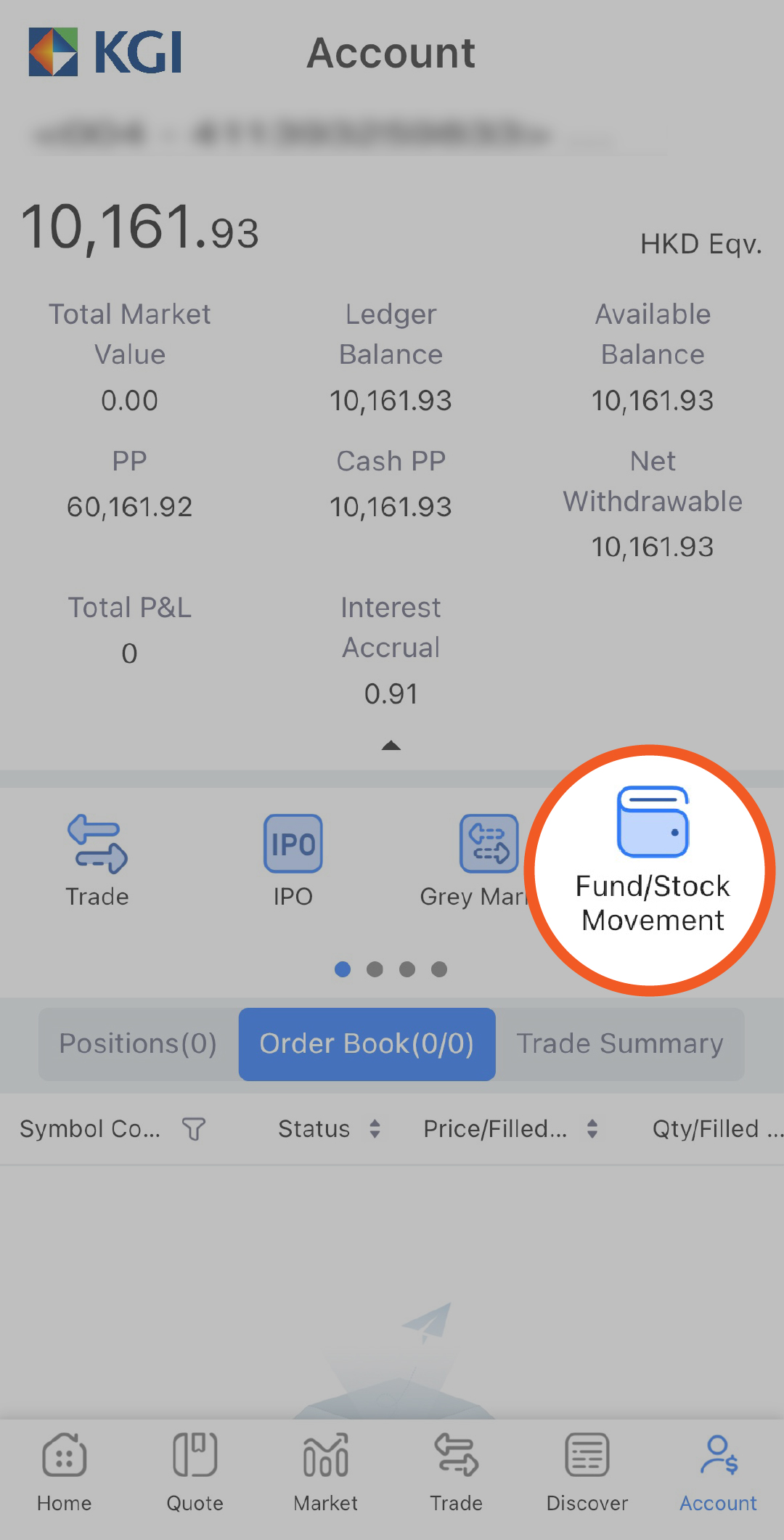 Step 1: Click“Fund/Stock Movement”after log into online trading system