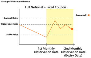 If the reference stock closes below the strike price at final fixing date, the investor needs to buy the stock at the strike price.